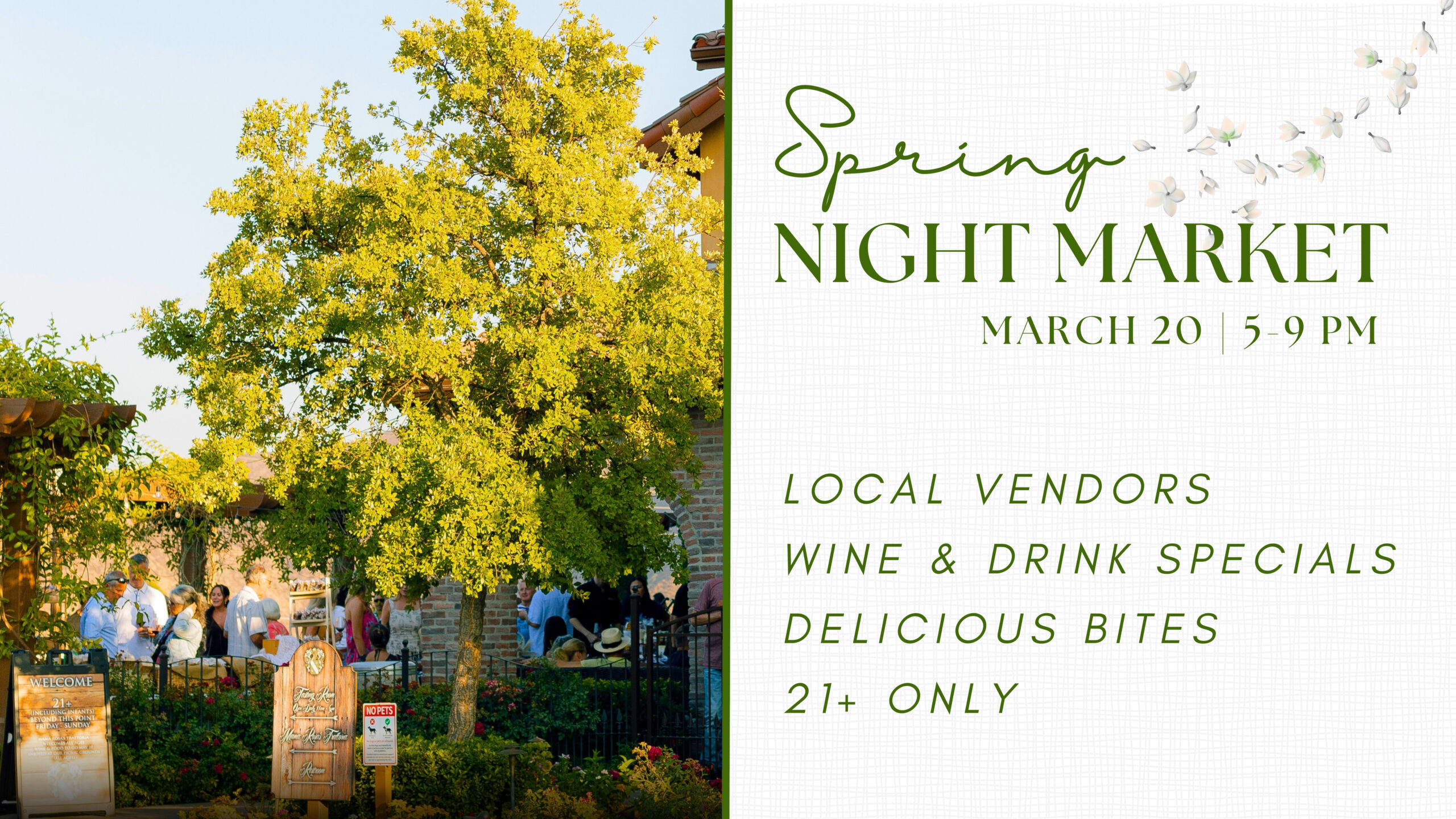 Our Tasting Room and Front Patio areas are 21+ Fridays, Saturdays and Sundays
